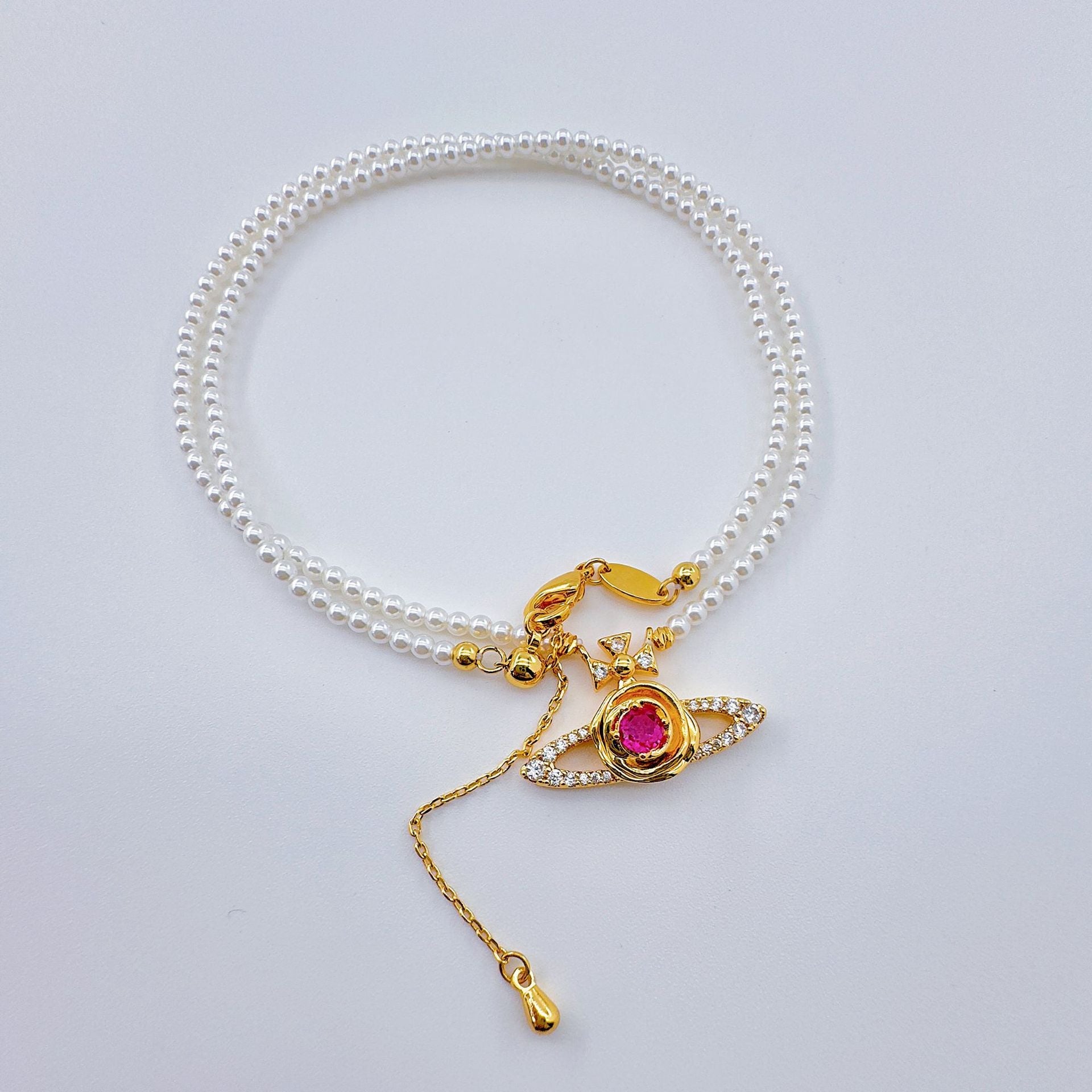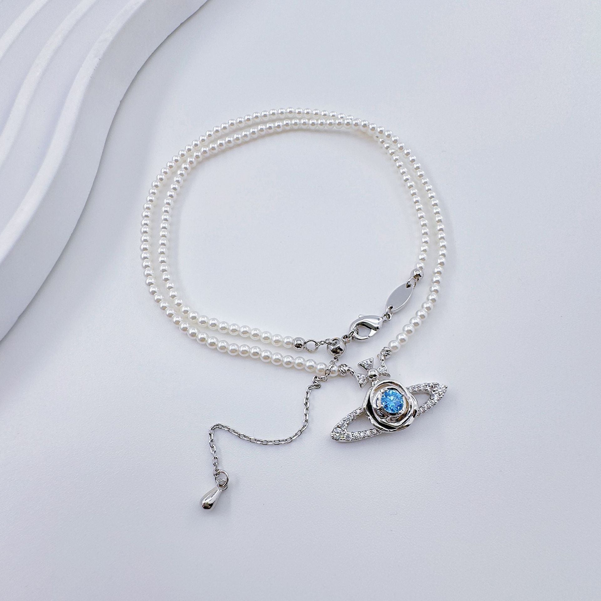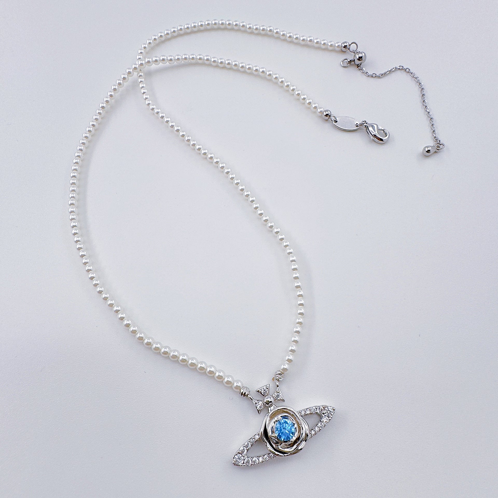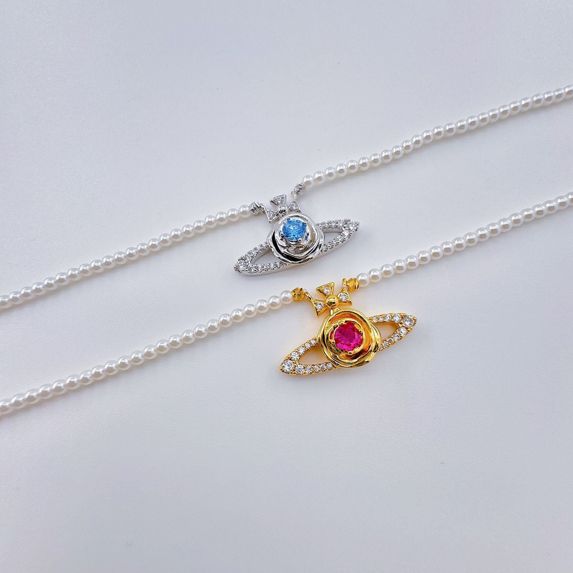 Imitation pearl,gold plated copper,zirconia,gold+purple,silver+blue,two styles,41-50cm,35g,Saturn elements,personalized fashion