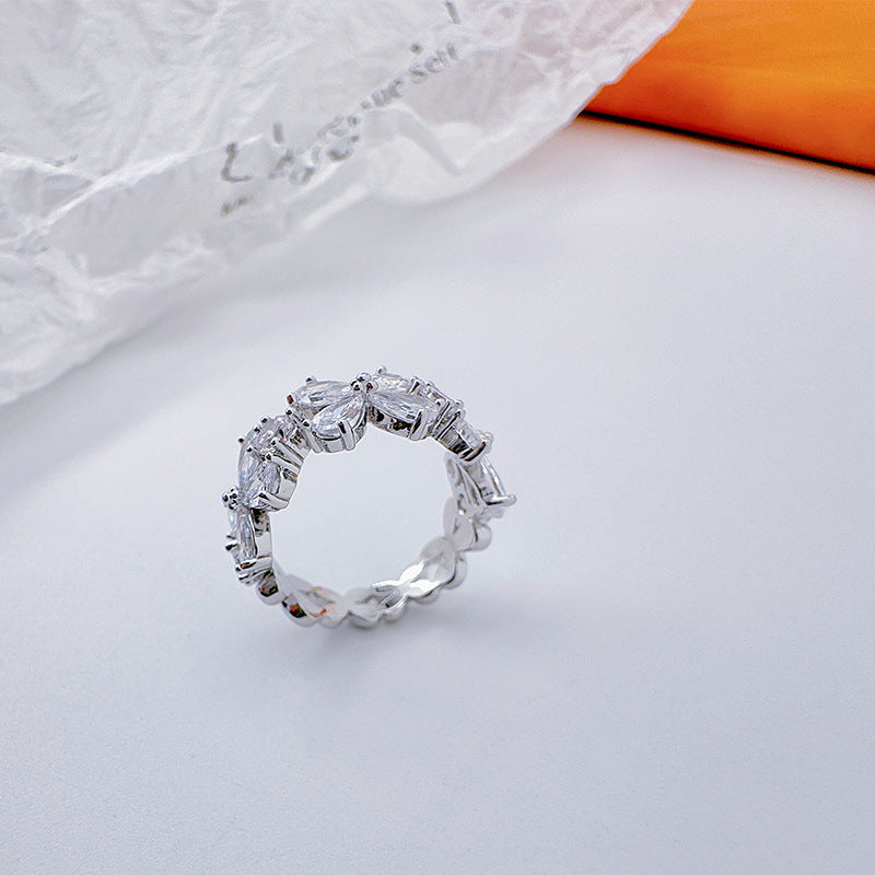 Zirconia four-petal flower open-end ring